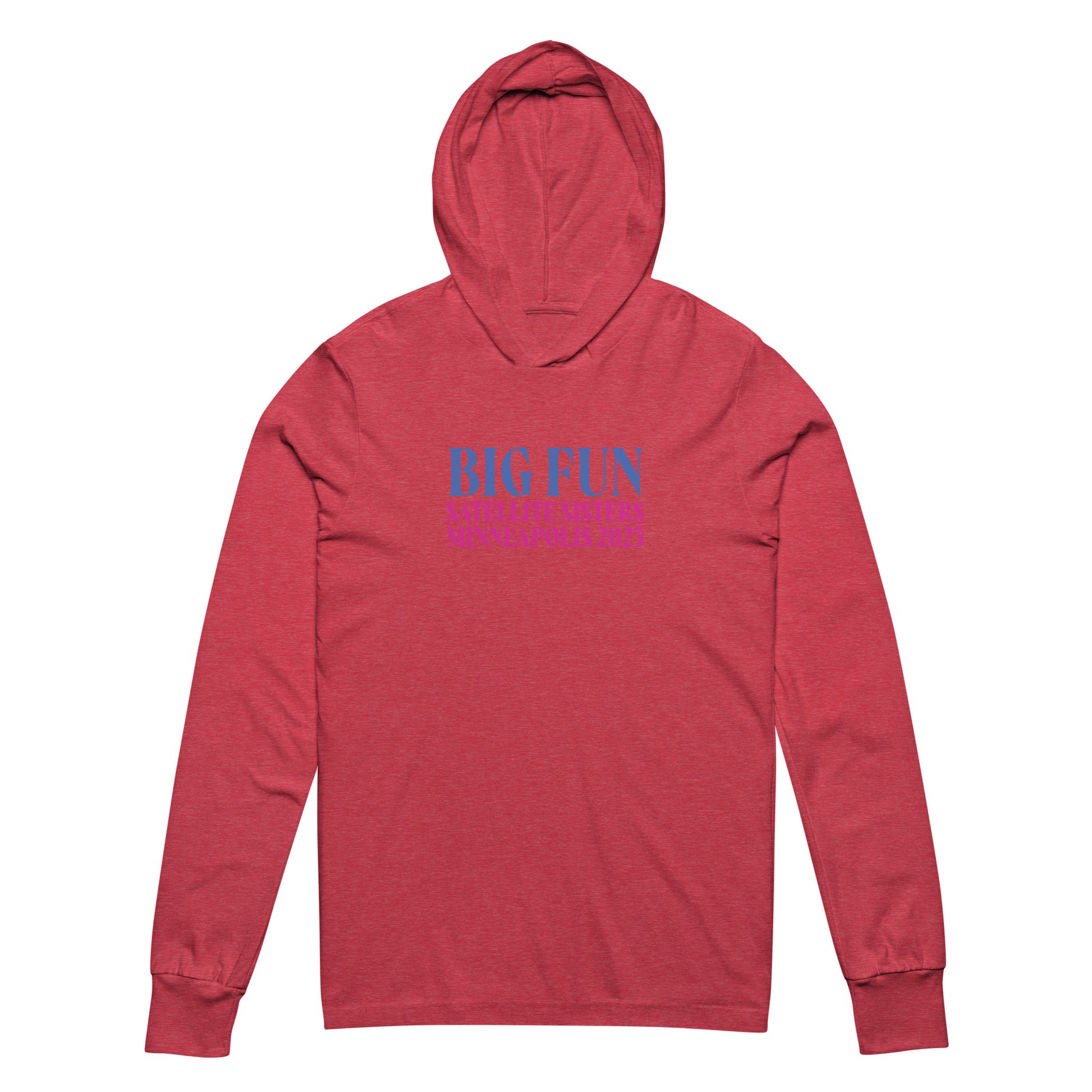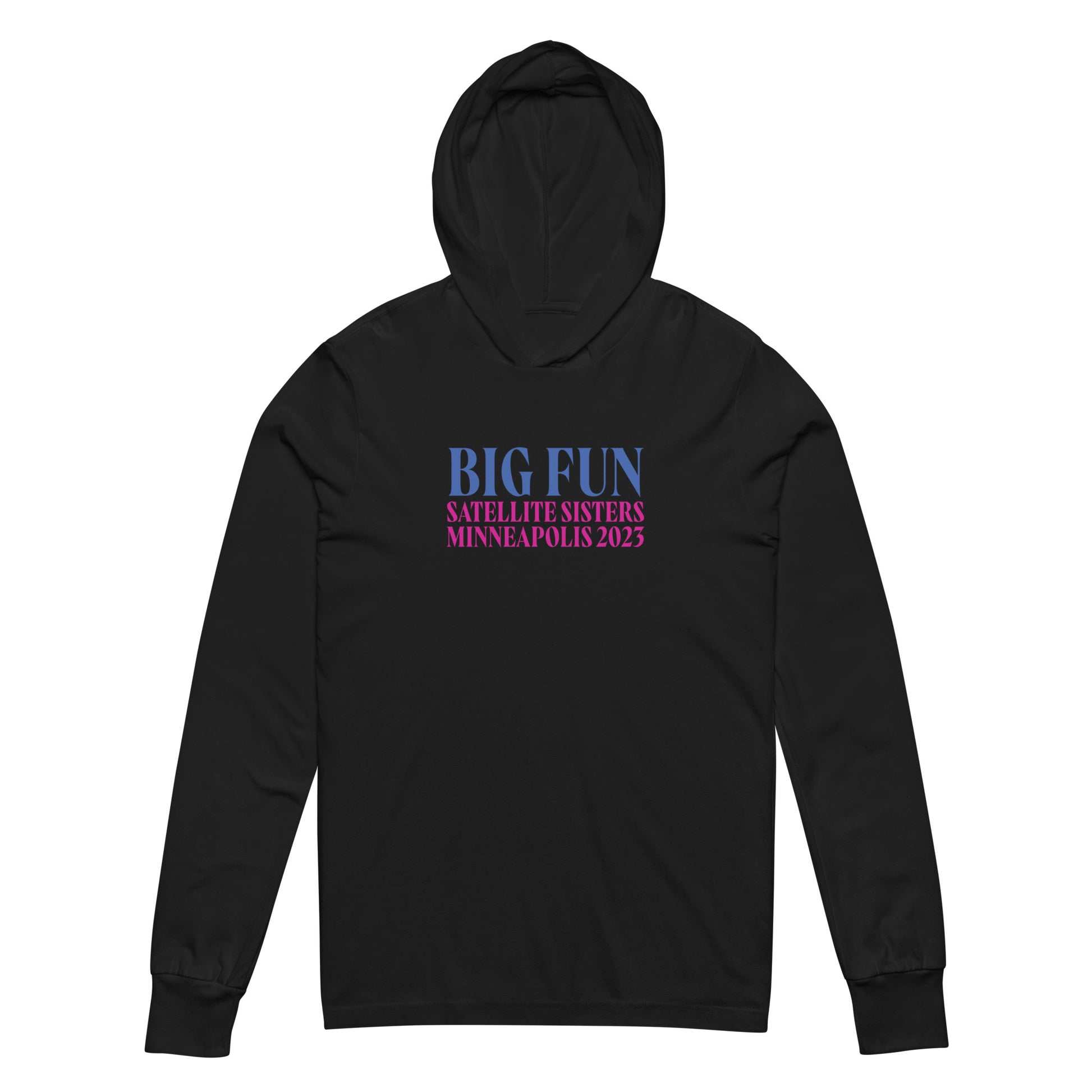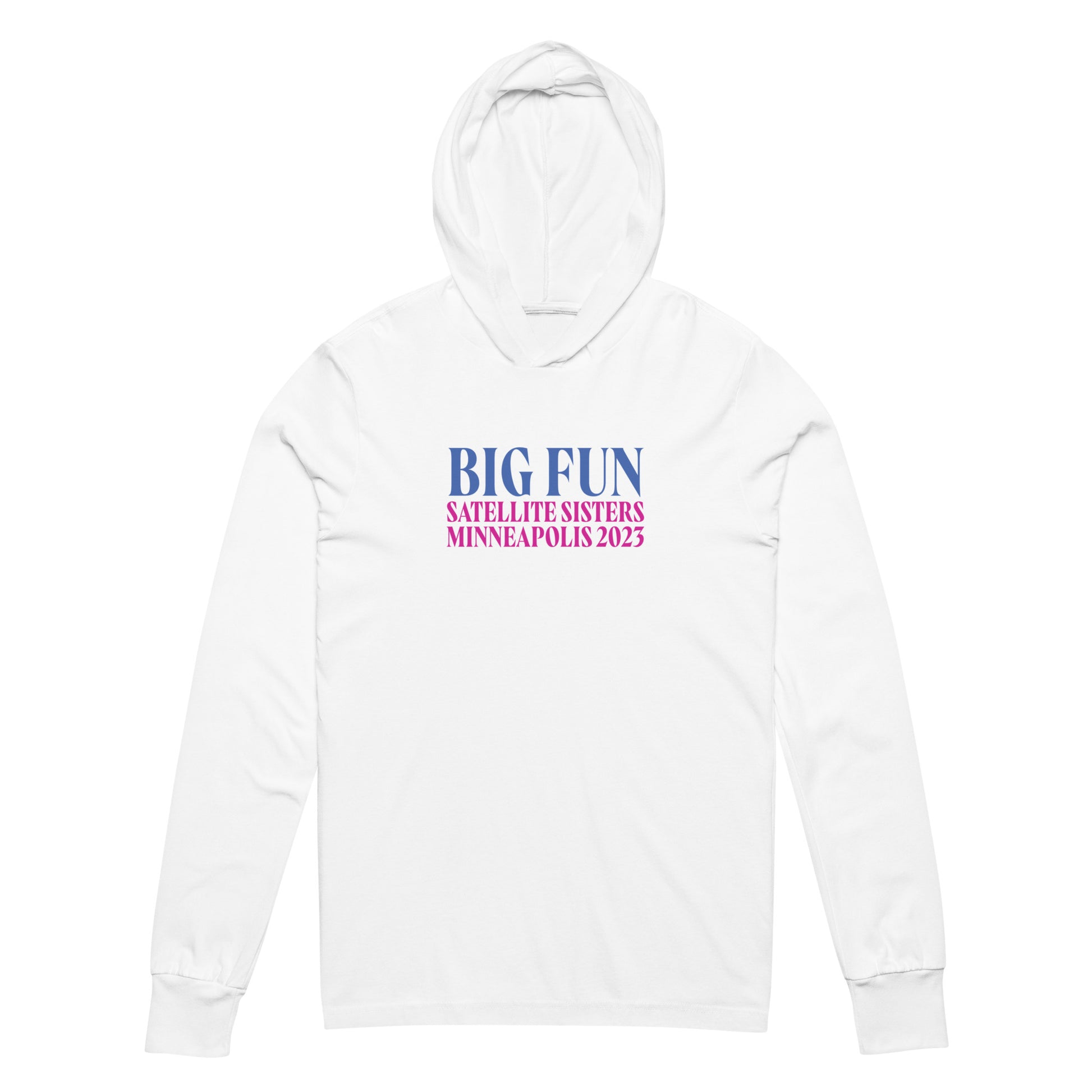 This hooded tee marks the weekend - Big Fun Weekend Minneapolis 2023. With its long sleeves and comfortable hood, this tee is perfect for layering, allowing you to create stylish outfits all year round.