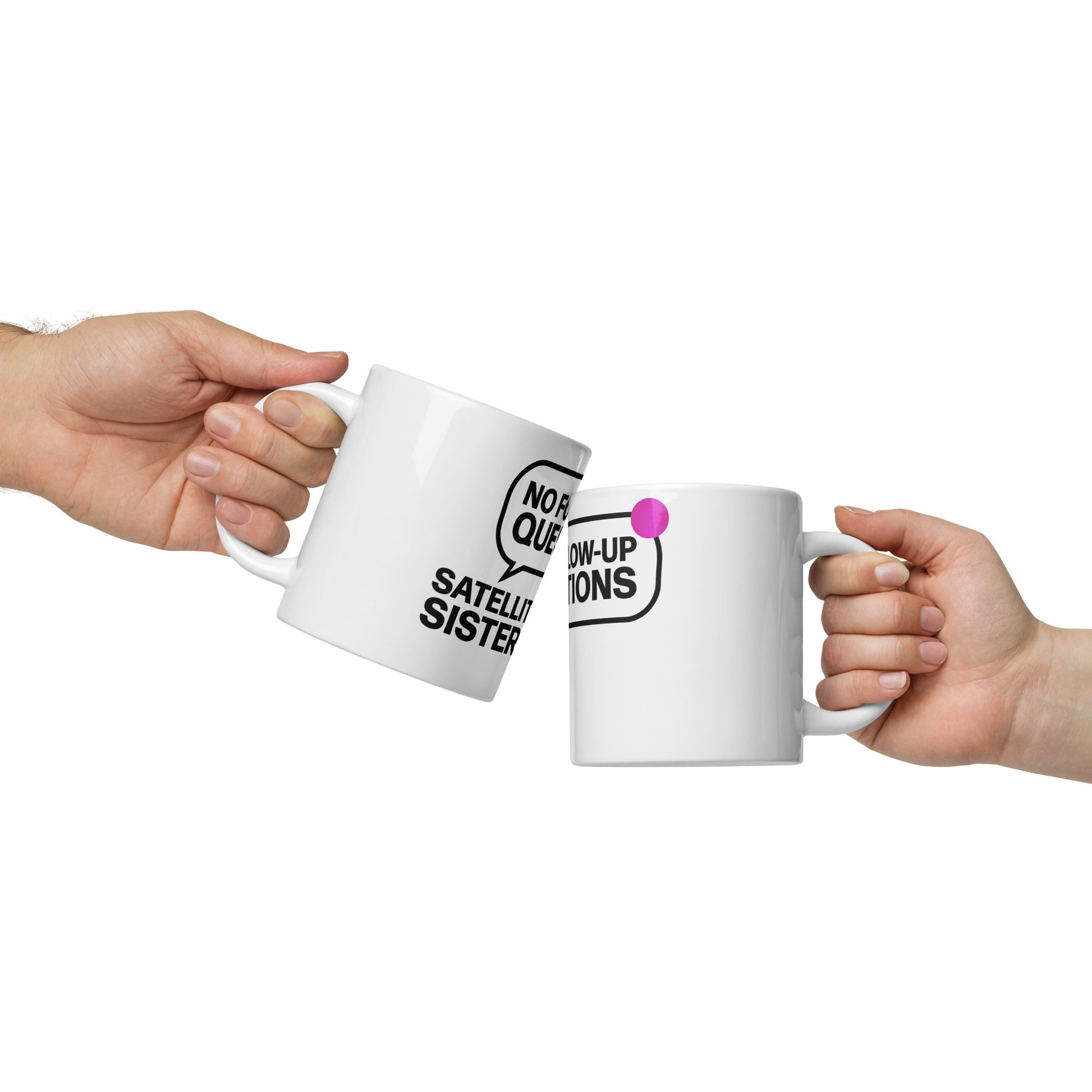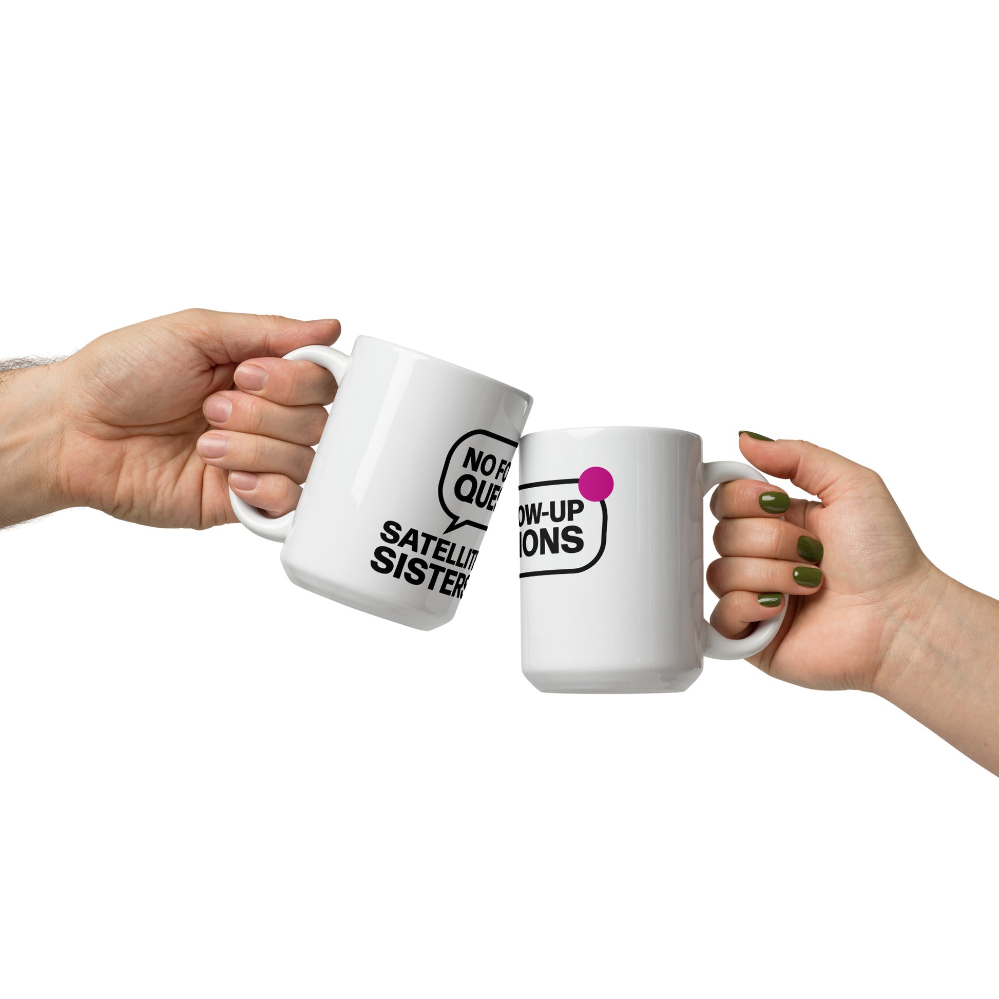 Don't talk to us before our coffee or you are going to get this response: No Follow Up Questions! A favorite Satellite Sisters response when we have no further information.