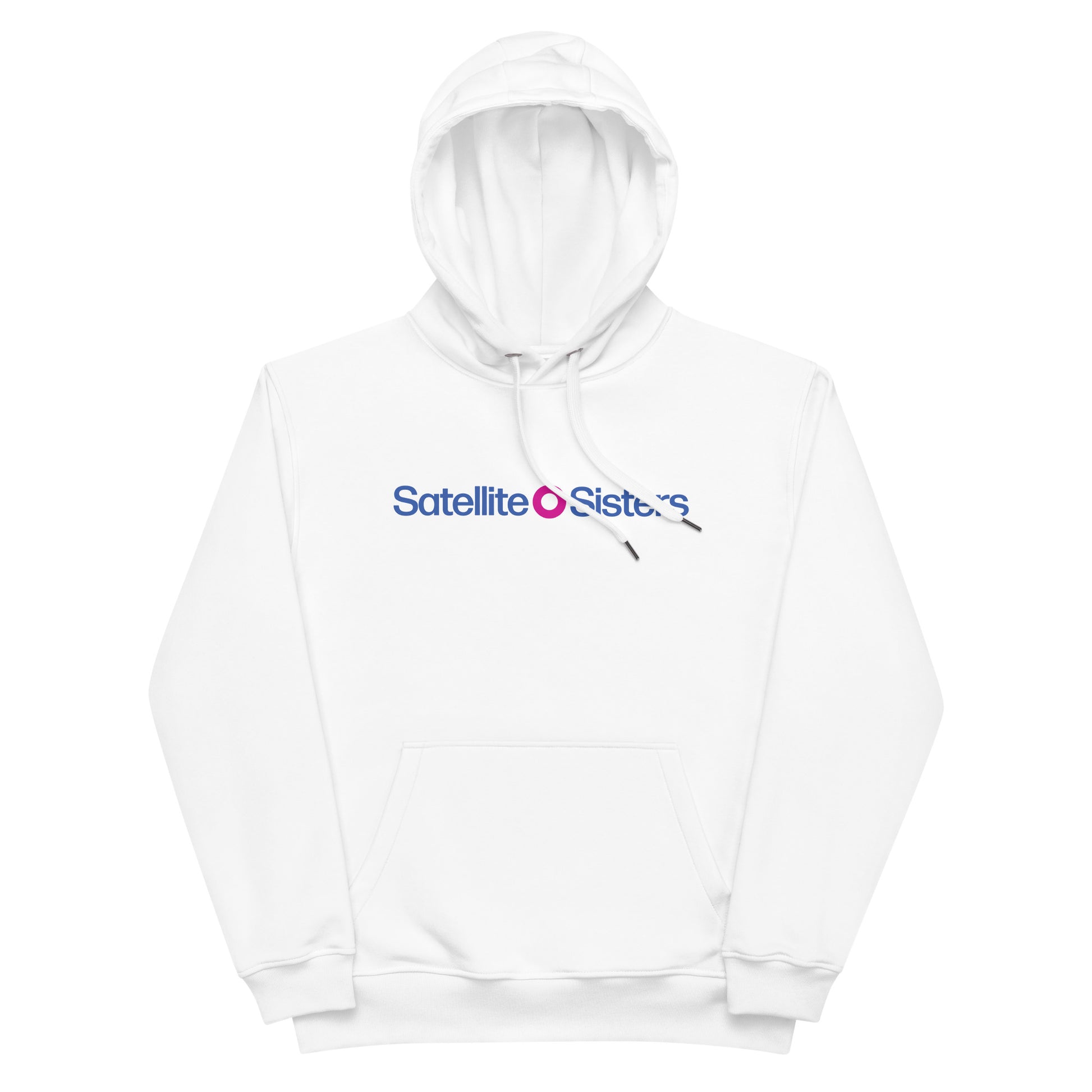 Satellite Sisters logo'd hoodie made of organic and recycled materials. With its comfortable fit, front pouch pocket, and double-layered hood, the hoodie will be your fave.