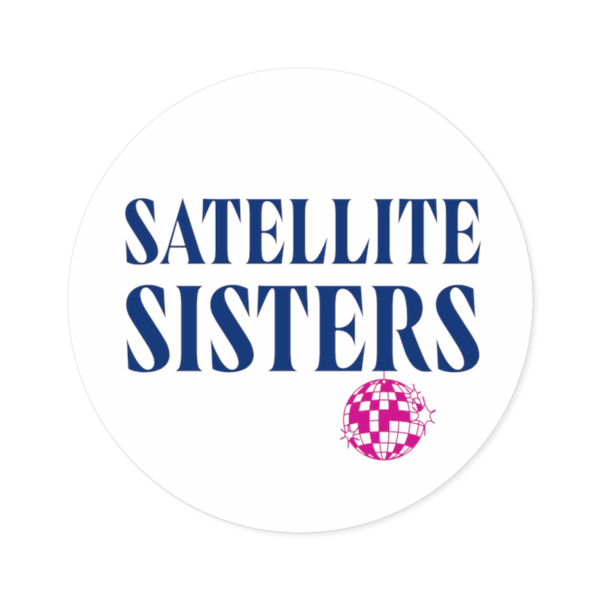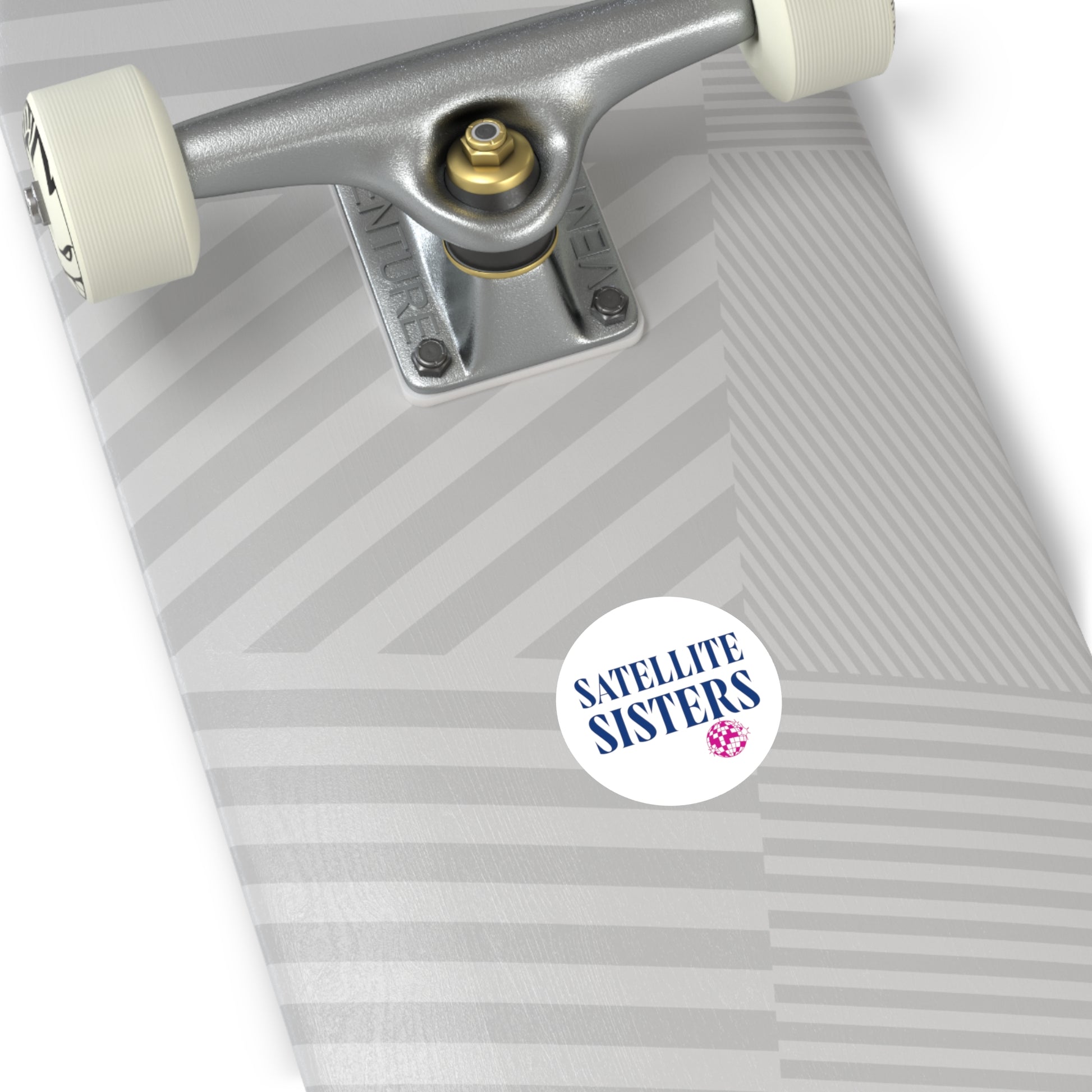 Satellite Sisters logo stickers for anywhere. These stickers come in a round shape, are water and scratch-resistant as well as coated with protective laminate. This means that they look great come sun, rain, or snow and are ideal both indoor and outdoor use