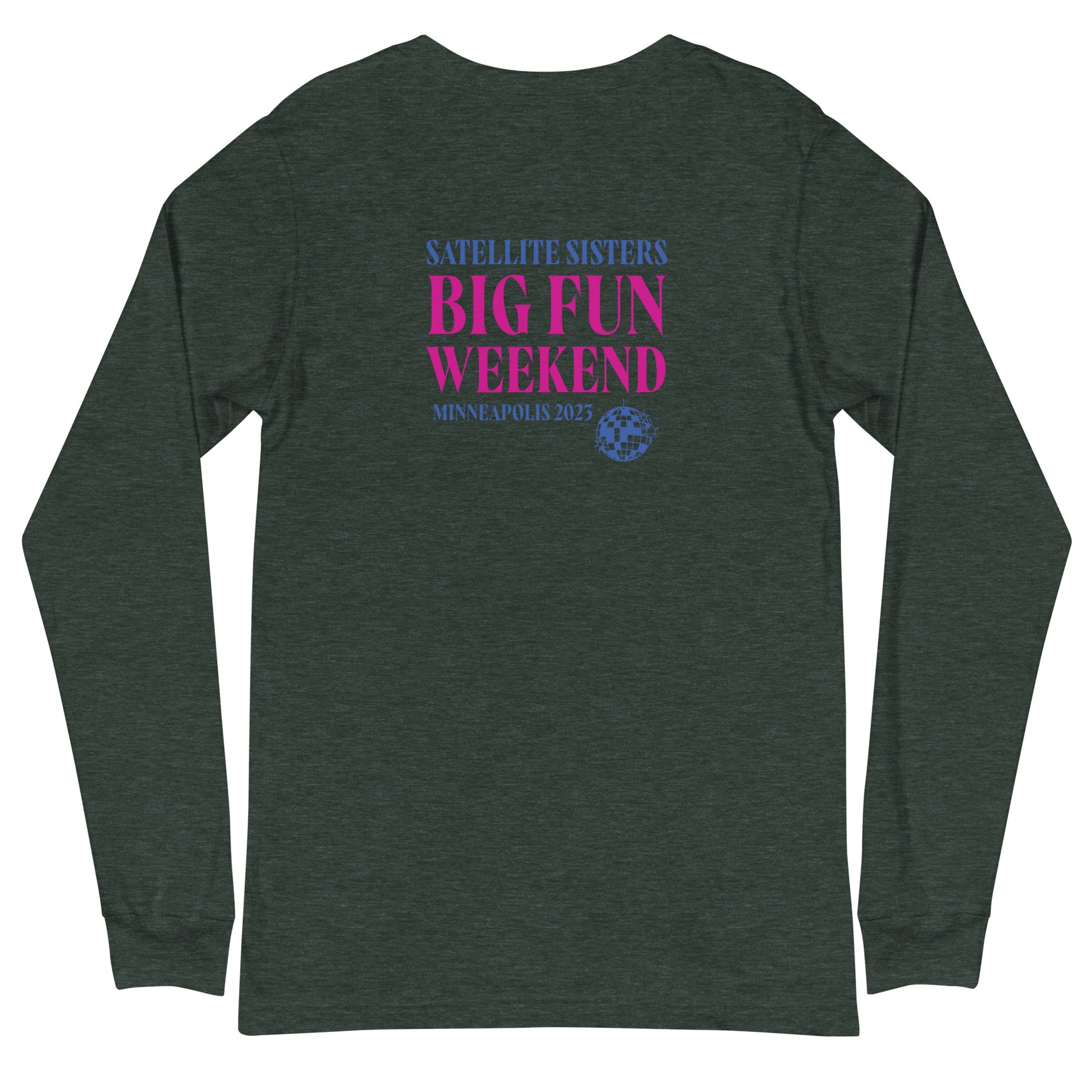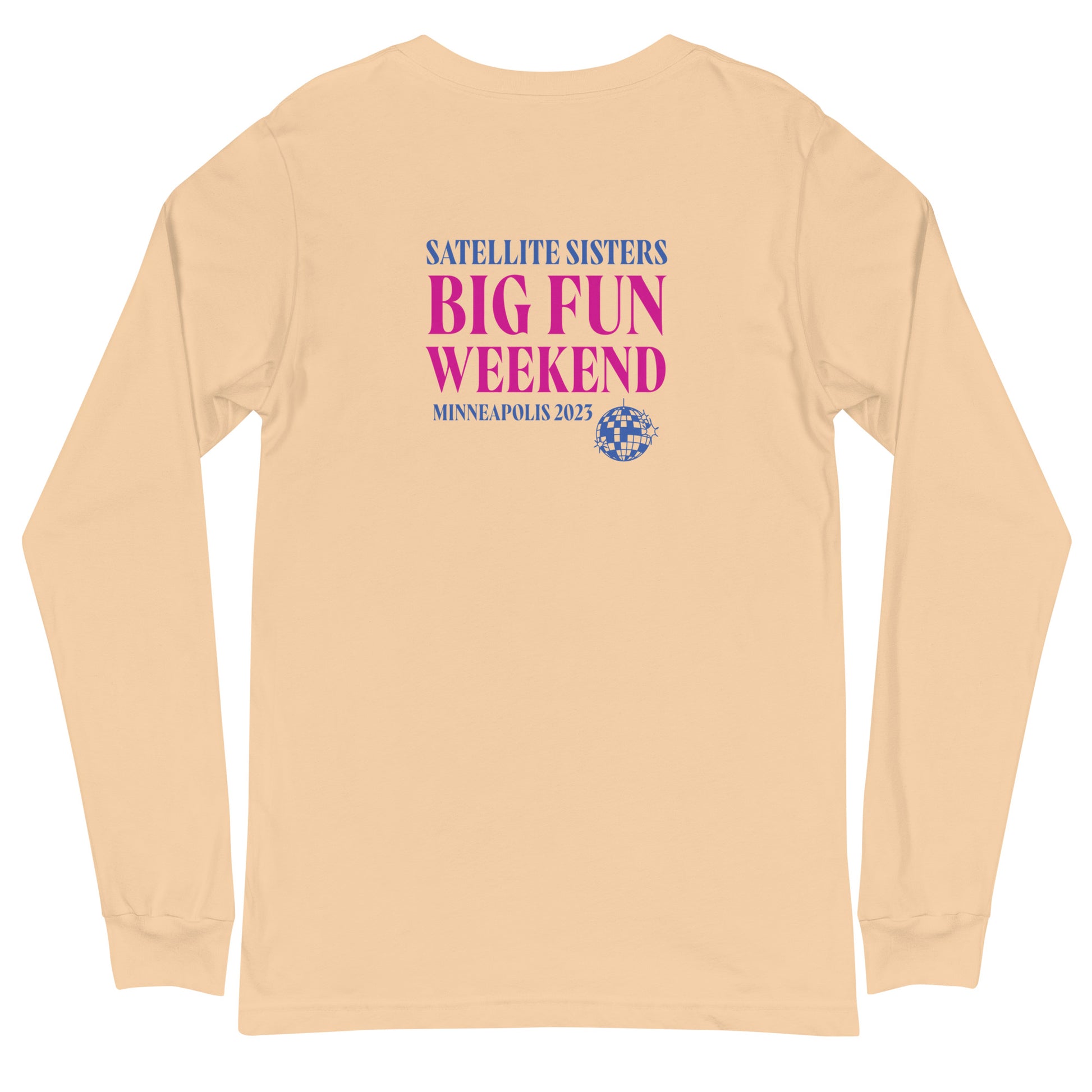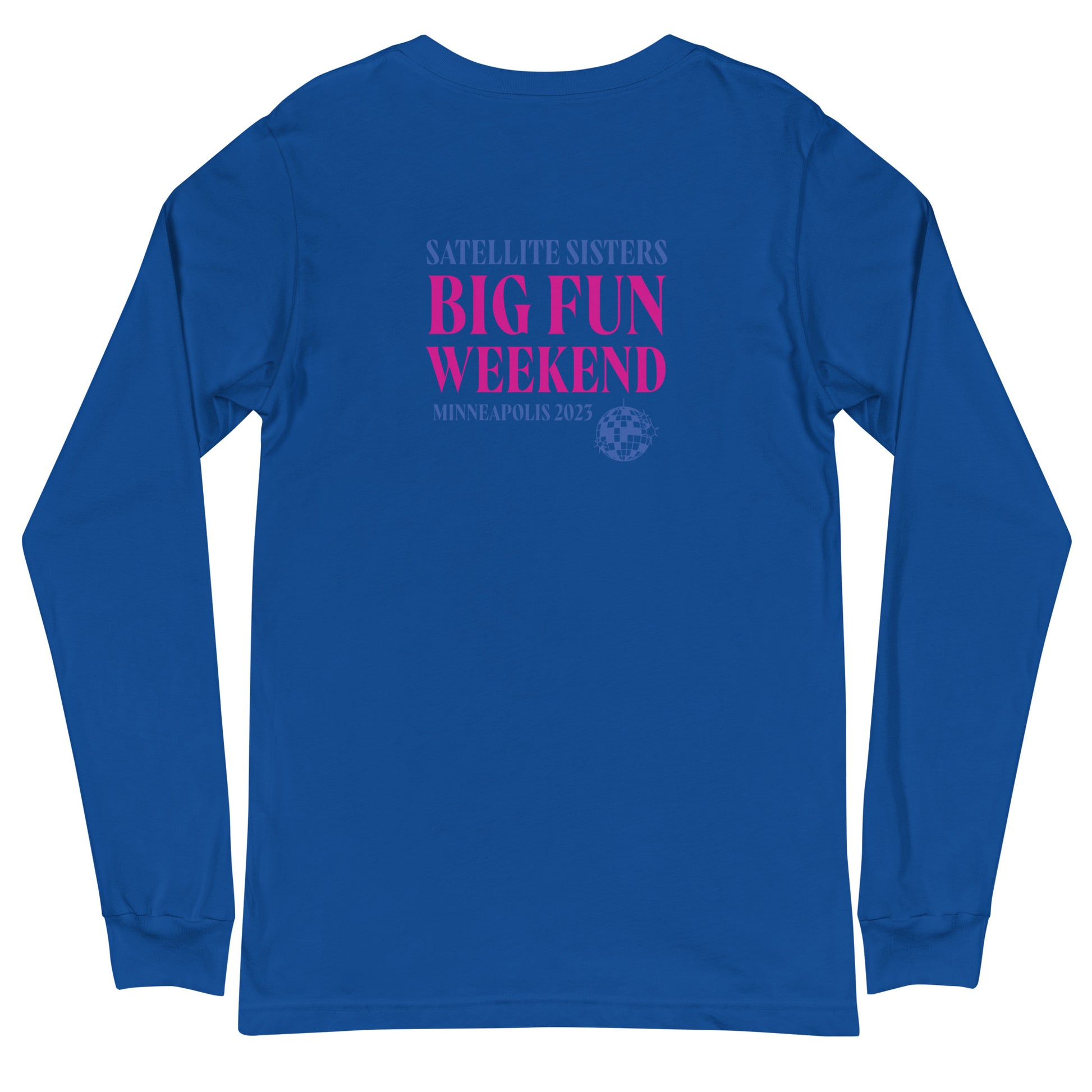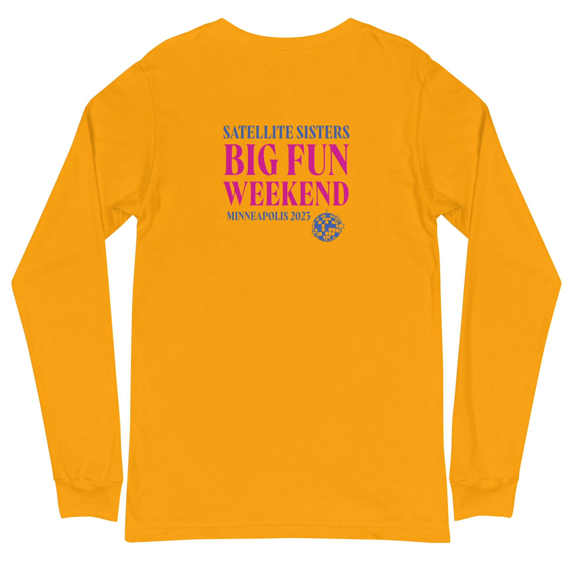 Unisex Long Sleeve Tee Satellite Sisters Logo + Big Fun Weekend Logo
